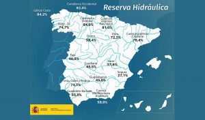 La reserva hidráulica en España se sitúa actualmente al 53,8% de su capacidad total. Los embalses almacenan más de 30.000 hm³ de agua, disminuyendo en la última en 564 hectómetros cúbicos, en torno al 1,0% de la capacidad total de los embalses.