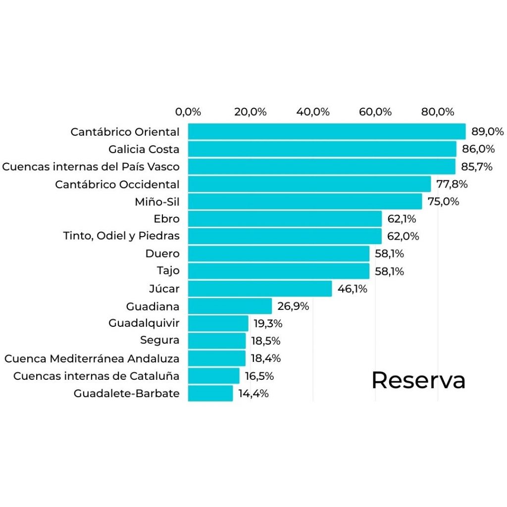 La situación de las cuencas, en hectómetros cúbicos, se detalla en el cuadro adjunto: