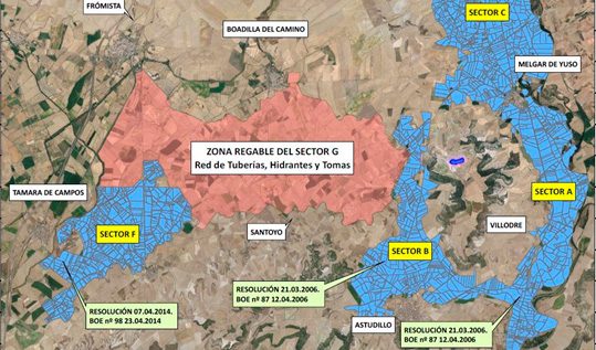 - Sectores C, D y E. Año 2006. Términos Municipales de Itero de la Vega, Lantadilla, Melgar de Yuso, Herrera de Pisuerga, Ventosa, Zarzosa, Melgar de Fernamental y San Llorente. Con fecha 23 de noviembre de 2006, la Secretaría General para la Prevención de la Contaminación y el Cambio Climático, adopta la decisión de no someter a evaluación de impacto ambiental este proyecto.