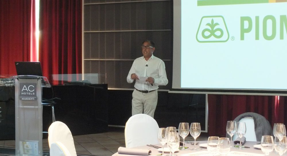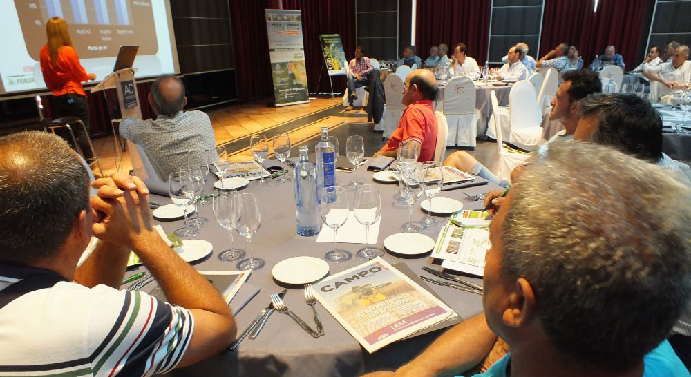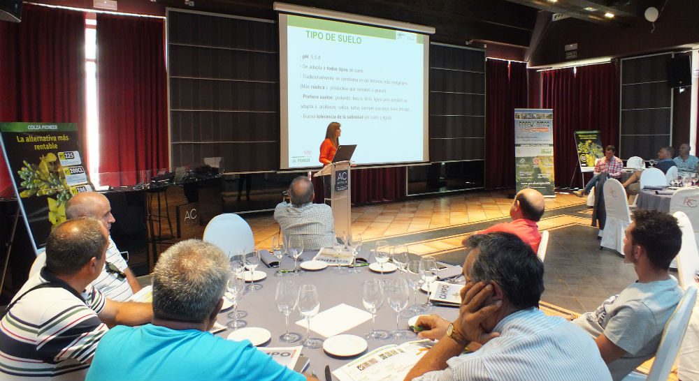 En su ponencia, la delegada de zona de Pioneer, Eva Pelaz, presentó tres semillas de colza, entre las que destacó PT 200 CL, con gran vigor de nascencia. «El objetivo es obtener unas 30 o 40 plantas por metro cuadrado», como explicó, en un cultivo cuya variación en la densidad de planta se compensa con pocas variaciones en el rendimiento final.