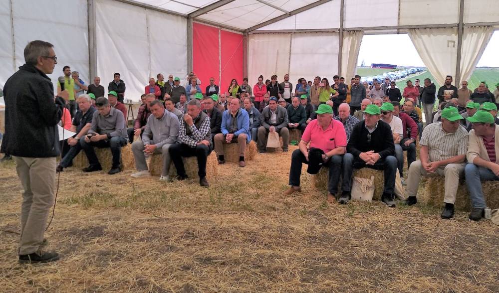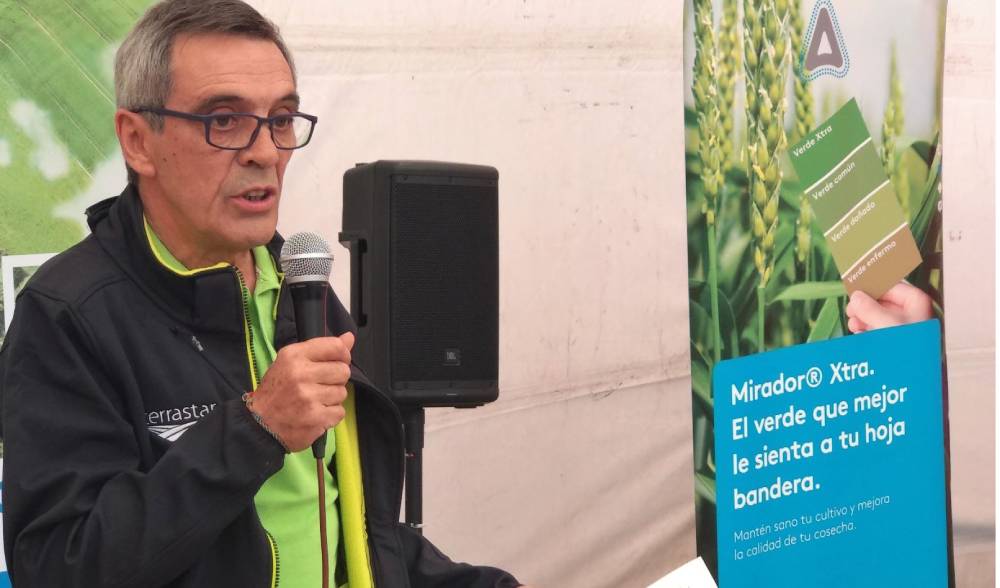 En lo relativo al control de enfermedades, los agricultores presentes en Quintanaortuño han podido comprobar las diferencias entre parcelas tratadas con el fungicida Mirador Xtra y parcelas sin ningún tipo de tratamiento. “En el momento en que no se ha hecho tratamiento, se observan perfectamente royas. Se nota sobre todo en masa foliar que está perdida. Y la masa foliar es fundamental para el llenado de los vasos en la granazón de la planta. En este caso, la parcela no tratada ha perdido prácticamente un 20% de producción con respecto a la tratada con fungicida”, ha explicado a los presentes Vicente Fuentes, asesor técnico de Terrastar. “Lo que asegura la producción en el cereal es que el cultivo llegue al último estadio los más sano posible, y en particular la hoja bandera. Si somos capaces de lograr eso habremos garantizado su máximo rendimiento”, ha completado Daniel Núñez, Sales Area Manager de ADAMA.