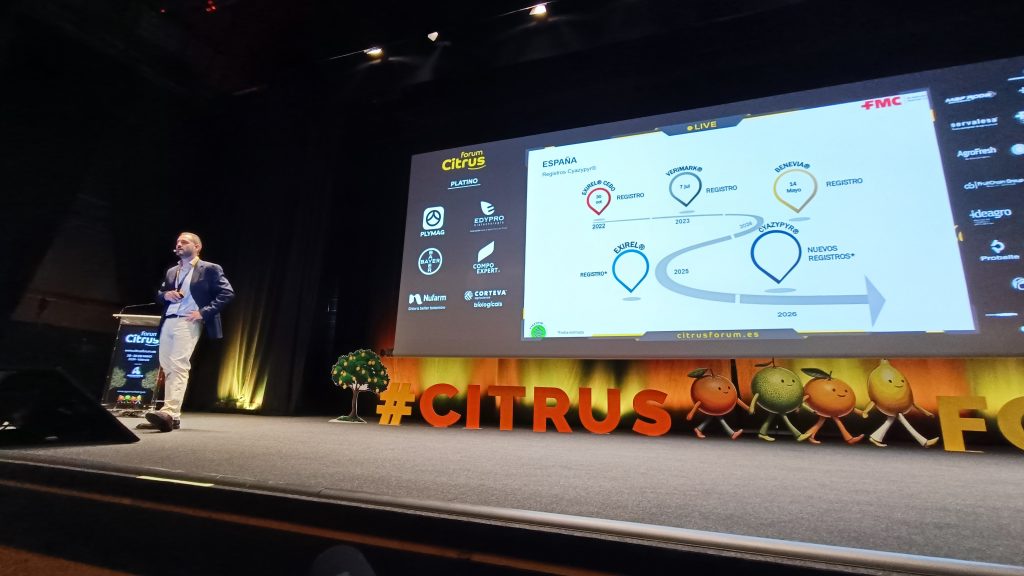 En este contexto de innovación y tecnología aplicada, la empresa FMC participará en Citrus Connect 2025 presentando Exirel®, una nueva herramienta recientemente registradapara su uso en España. Este insecticida, basado en Cyazypyr®, es una materia activa de última generación, una «molécula revolucionaria, que se va a convertir en una solución clave en la lucha contra diversas plagas en cultivos como los cítricos», afirma José Antonio Rodríguez, el director de Marketing de FMC