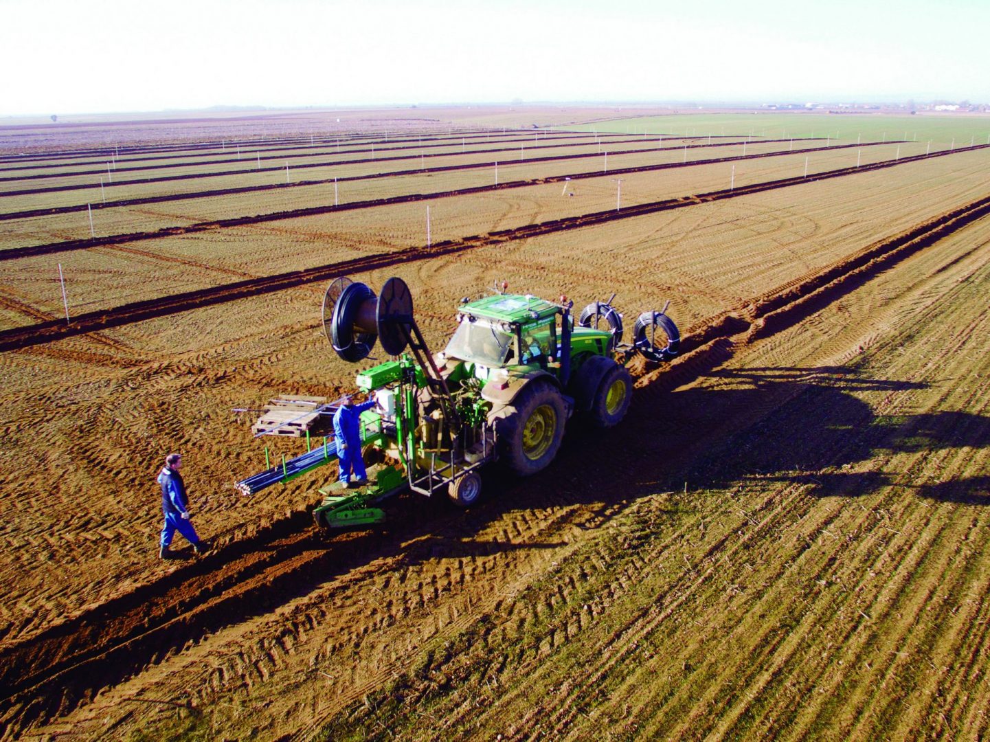 Una vez instalada, la cobertura enterrada es compatible con todas las labores necesarias en los cultivos puesto que los aspersores están separados a una distancia de 18 por 18 metros. El caudal del aspersor es de 2.000 litros y garantiza la homogeneidad del riego.