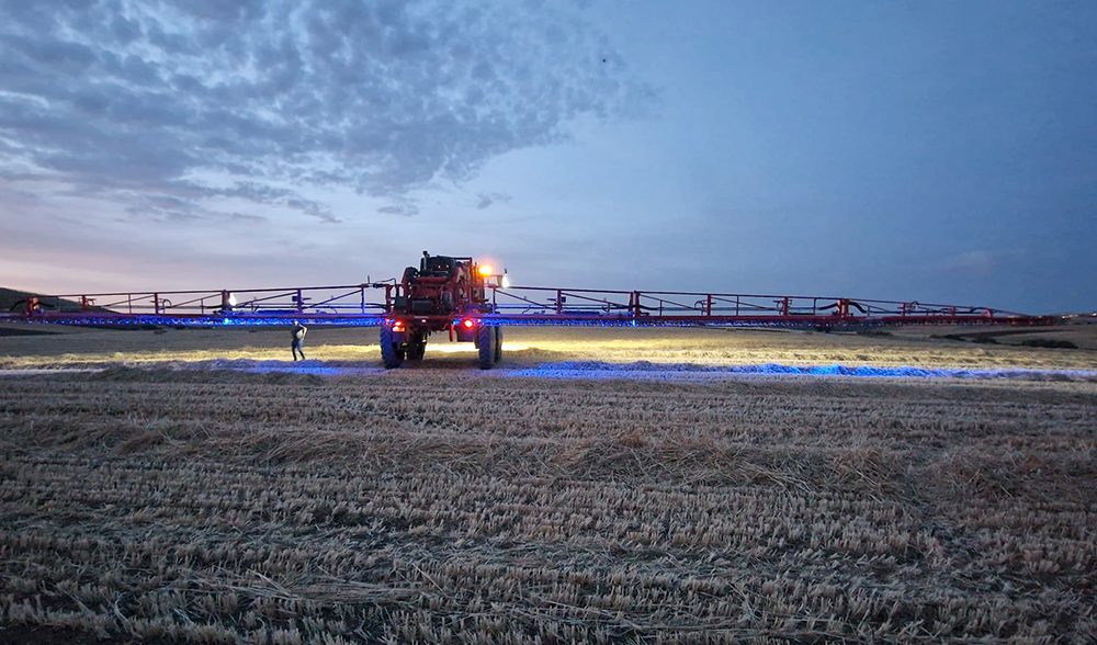 Con HTA se hicieron varias pasadas. Los aplicadores que acudieron a la demostración vieron que con vientos de 40 km/h, no había deriva y que el consumo de líquido era muy inferior a los equipos que tienen. La cobertura de la planta, extraordinaria.