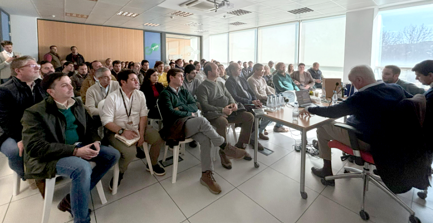 El evento comenzó con la bienvenida de Antonio Machado, responsable comercial de la zona sur de España y Portugal en Agromillora, quien resaltó la creciente importancia de la variedad Lecciana en el sector y su potencial en plantaciones de secano, muy interesantes para la región de Extremadura.