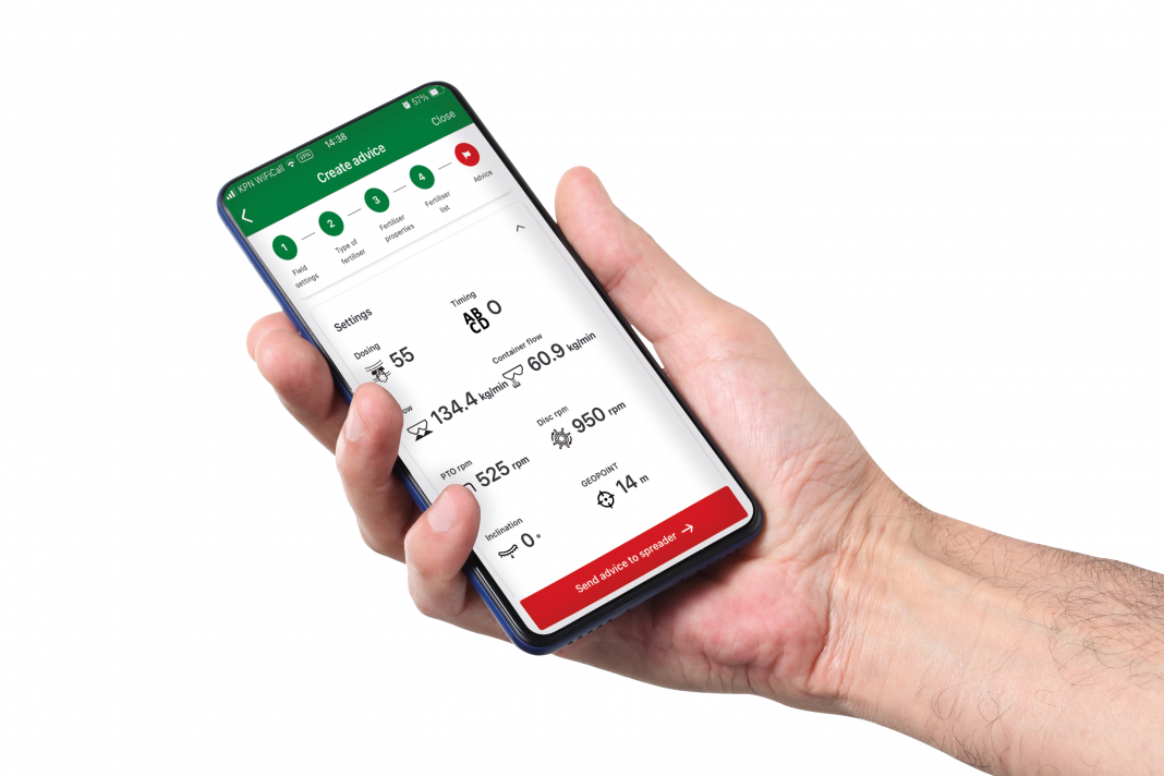 El Spreader Competence Centre de Kverneland, en Nieuw-Vennep (Países Bajos), prueba constantemente nuevos fertilizantes, que se publican en cuatro plataformas diferentes, de las que dispone Kverneland, para distribuir las tablas de distribución. Estas plataformas son la página web, la SpreadApp para smartphones y tablets, el manual de usuario y la AutosetApp de los terminales Tellus GO+ y Tellus Pro.