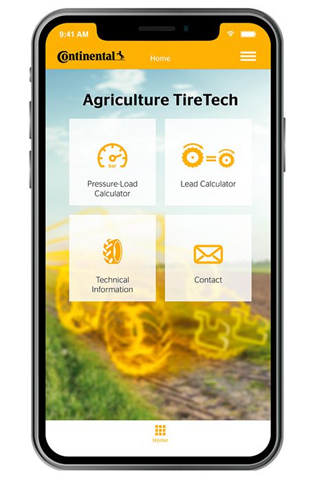 La aplicación para neumáticos agrícolas, Agriculture Tyretech (disponible de forma gratuita para iOS y Android), y ContiPressureCheck™ están diseñados para ofrecer información sobre la optimización de los neumáticos para los diferentes trabajos agrícolas y calcular la presión adecuada según la carga del vehículo.