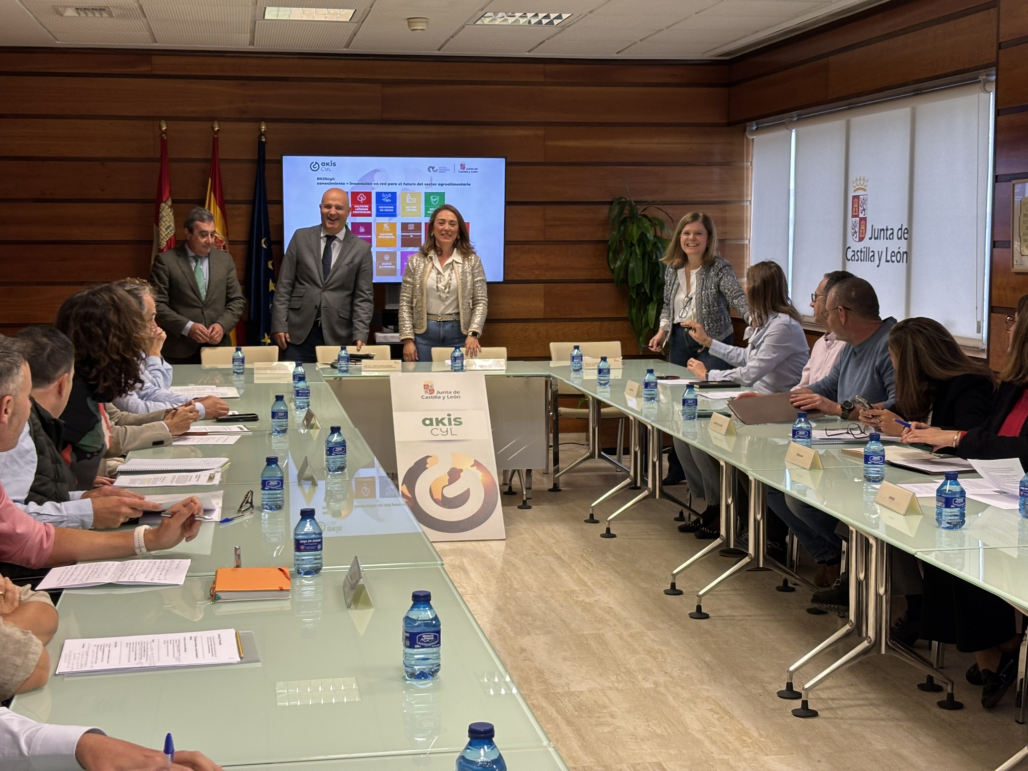 La consejera de Agricultura, Ganadería y Desarrollo Rural, María González Corral, se ha reunido con los representantes de los nuevos grupos sectoriales que forman parte de AKISCyL, una red que alcanza ya las 17 áreas de trabajo integradas por más de 400 profesionales, como agricultores, ganaderos, cooperativas, organizaciones agrarias, universidades, centros tecnológicos, industrias, técnicos y personal de la Consejería.