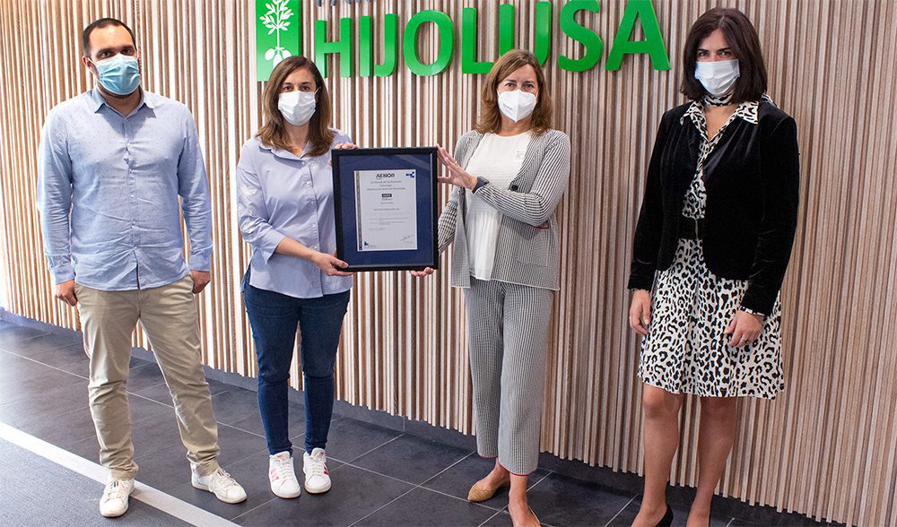 La entrega del certificado ha contado con la participación de Inmaculada García, directora de AENOR en Castilla y León; Beatriz Álvarez, responsable de administración y RR.HH. de Patatas Hijolusa; David García, director de planta de Patatas Hijolusa y Ruth Nieto, responsable de calidad y sistemas de gestión de Patatas Hijolusa.