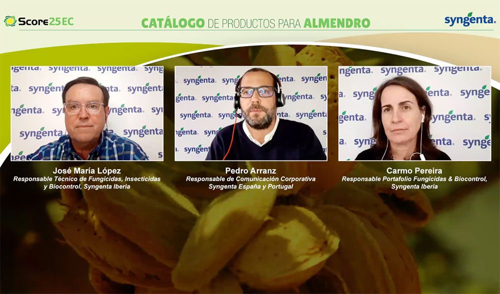 Score 25 EC es un fungicida sistémico de muy amplio espectro, frente a las principales enfermedades del almendro, que se puede aplicar justo después de la floración, ofreciendo una actividad curativa y preventiva de alta eficacia al inhibir el crecimiento del hongo y limitar así la proliferación de esporas y con ello su replicación», como ha explicado Carmo Pereira, responsable del catálogo de protección de cultivos y soluciones biológicas de Syngenta, España y Portugal.