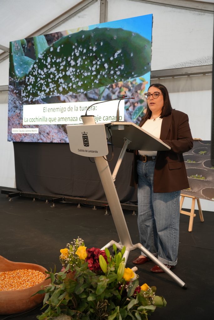 Uno de los momentos más destacados de la jornada llegó con la intervención de la investigadora Claudia Cabrera Martín, quien abordó el problema de la cochinilla que afecta a la tunera. Esta plaga está provocando un deterioro significativo en zonas emblemáticas como Mala y Guatiza, con consecuencias tanto agrícolas como paisajísticas.