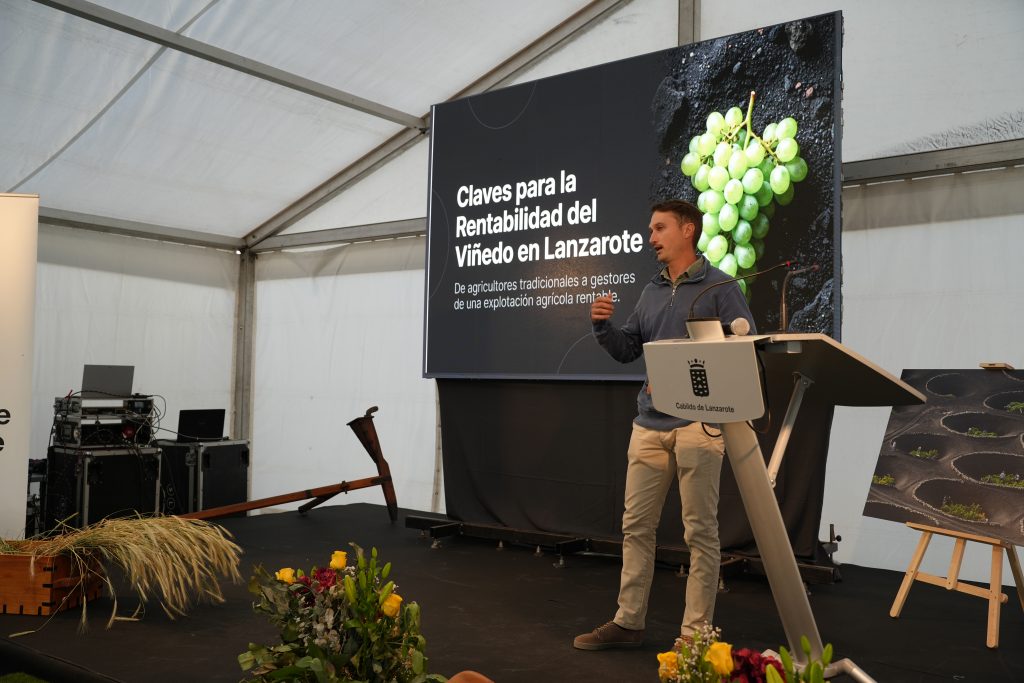 El viñedo, símbolo indiscutible de Lanzarote, también tuvo un espacio central en la jornada. El productor y enólogo David Fernández analizó las claves para mejorar la rentabilidad de las explotaciones vitícolas, poniendo el acento en la necesidad de optimizar costes y aumentar el valor del producto.