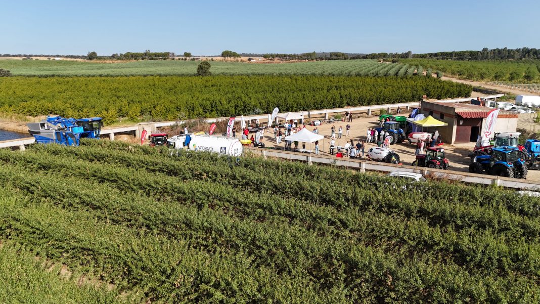 Agromillora ha celebrado este pasado miércoles una jornada de campo de demostración de la cosecha del almendro en seto, dirigida a agricultores y profesionales del sector, en la Finca Mudéjar de Torrefresneda (Badajoz).