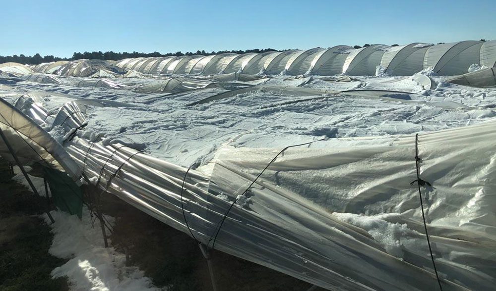 La caída de infraestructuras, túneles para la producción de frutos rojos en Segovia debido al peso de la nieve como consecuencia del paso de la borrasca Filomena, es la mayor incidencia de la que ayer tenían constancia en Agroseguro respecto a los daños acaecidos en Castilla y León.
