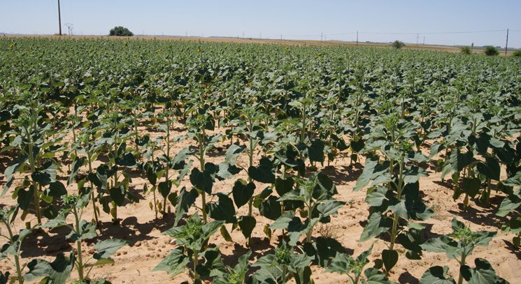 La falta de tempero motivó retraso de siembras de girasol, aunque las lluvias caídas tarde lo remediaron en parte. El riesgo está ahora en que la floración del girasol coincida con las altas temperaturas que ya nos han asolado en junio; y con falta de humedad que domina esta campaña agrícola. Es posible la necrosis del capítulo.