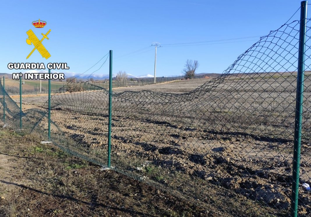 Los guardias civiles encontraron a dos personas ajenas a la instalación manipulando y forzando la valla metálica que perimetra el huerto solar fotovoltaico emplazado en el lugar, con evidencias de que pretendían acceder por la fuerza a su interior, supuestamente para apoderarse del cableado de cobre existente.