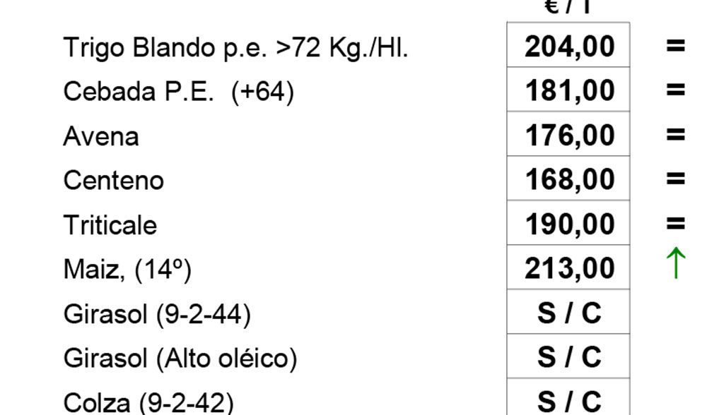 Apenas ha habido cambios en la sesión de hoy en la lonja de Salamanca. Al menos no ha habido variaciones en las tendencias. Los cereales ha terminado de frenar precios, con la salvedad del maíz, que cotiza a 213 euros la tonelada.
