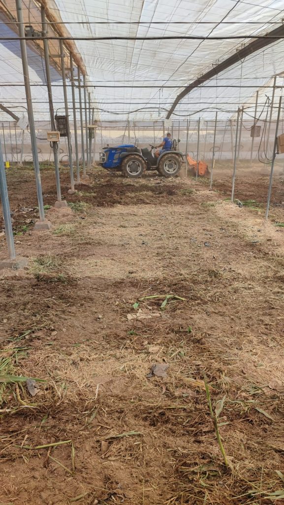 También se ha explicado cómo esos materiales fueron incorporados con el rotavator al suelo para continuar el proceso de biosolarización regándolo, cubriéndolo con plástico y cerrando el invernadero hasta que llegue el momento del trasplante, pasado el mes de agosto.