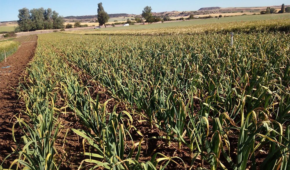 España tiene sembradas 27.000 hectáreas de ajo, fundamentalmente en Castilla-La Mancha y Andalucía, cuya reducción de cosecha va a suponer, ha concretado Del Pino, «una reducción importante de kilos».