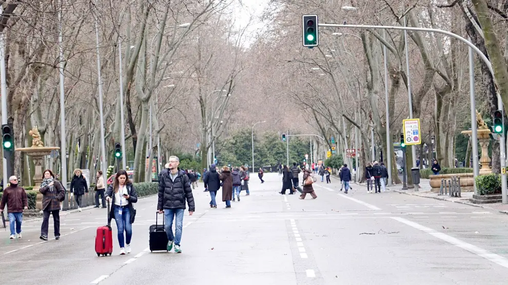 A mediodía, las columnas confluyeron en la Plaza de Colón, desde donde se inició una marcha a pie por el Paseo de Recoletos y el Paseo del Prado. El punto crítico se alcanzó frente a la Fuente de Neptuno, donde el acceso al Congreso de los Diputados permaneció blindado por un fuerte cordón policial.