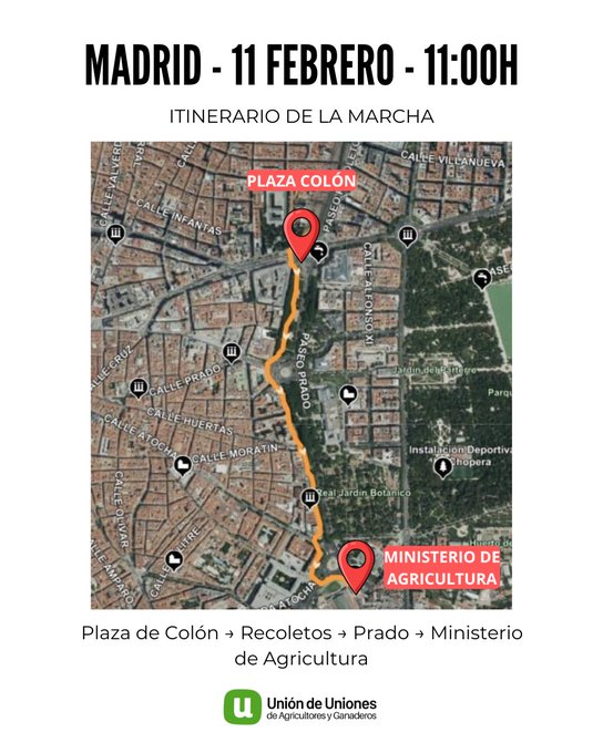 Convocada principalmente por Unión de Uniones de Agricultores y Ganaderos, con la participación también de la Unión Nacional de Asociaciones del Sector Primario Independientes (UNASPI). Se espera un gran número de agricultores y ganaderos aunque la Delegación de Gobierno solo permitirá la entrada de 500 tractores a Madrid.