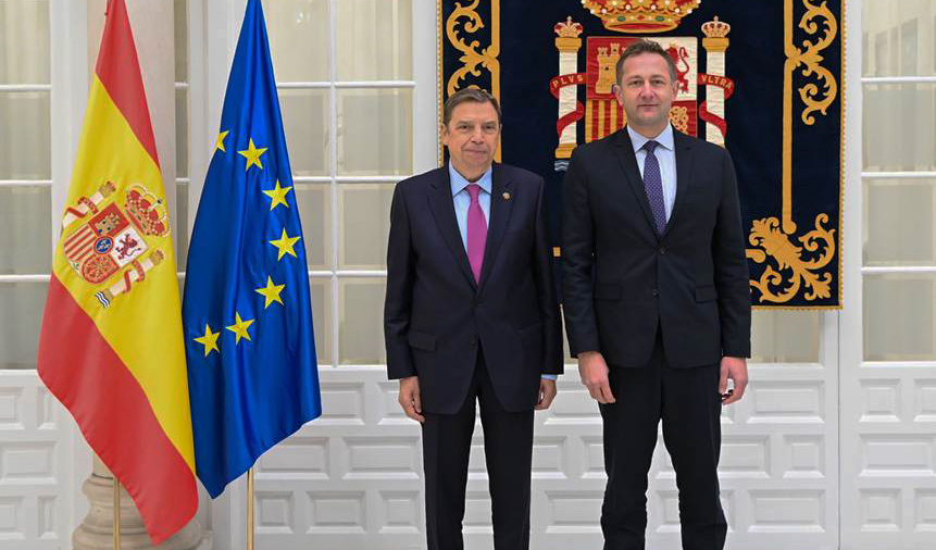 El ministro de Agricultura, Pesca y Alimentación, Luis Planas, ha trasladado al comisario de Agricultura y Alimentación, Christophe Hansen, la posición firme de España en un momento clave para la negociación del próximo Marco Financiero Plurianual y de la futura Política Agraria Común (PAC).