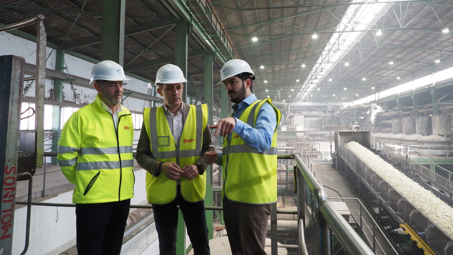 El presidente de ACOR, Jesús Posadas; el presidente de la Diputación de Valladolid, Conrado Íscar, y el director de la fábrica, Francisco Muñoz.