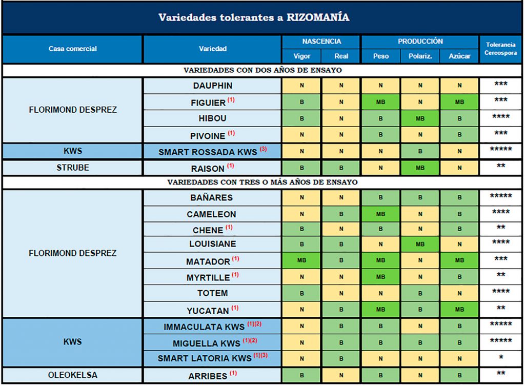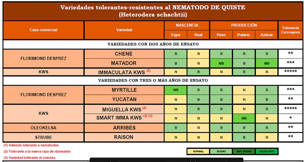 Habiéndose estudiado más de 35 variedades tolerantes a rizomanía y en torno a 15 variedades tolerantes a nematodos. En este último caso, los ensayos se llevan a cabo en parcelas con presencia de nematodo de quiste (Heterodera schachtii).