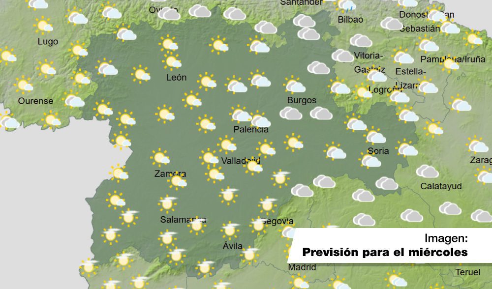 La jornada de hoy en castilla y León será nubosa con intervalos de nubes altas, según las previsiones de la Agencia Estatal de Meteorología (Aemet). En el norte, aumento de la nubosidad desde el oeste con precipitaciones débiles. En el resto, nubosidad de evolución en la segunda mitad del día. Temperaturas mínimas sin cambios o en ligero descenso en el extremo oeste y en ascenso en el resto.