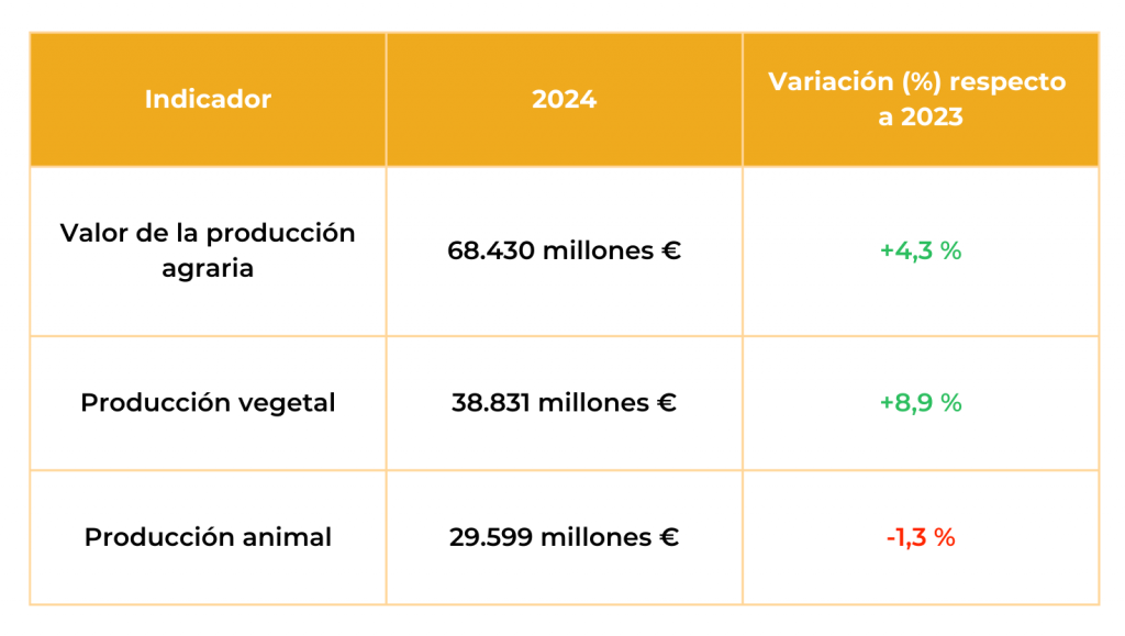 El valor de la producción vegetal ha aumentado un 8,9% respecto al año anterior, mientras que el de la producción animal ha disminuido un 1,3%.