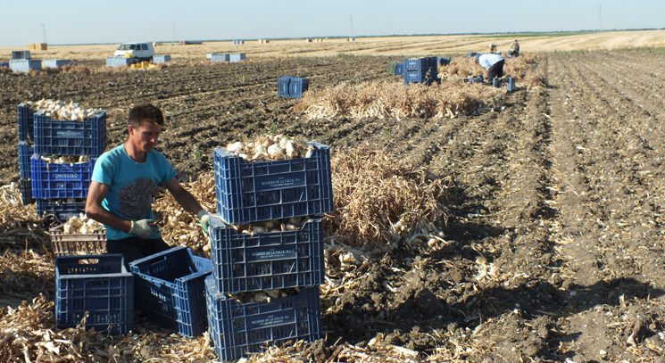 La campaña 2020/21 del ajo ha estado marcada por las abundantes y persistentes lluvias de mayo y junio, que retrasaron el inicio de la cosecha y por la crisis sanitaria. Disminuyó el volumen final de producción y una reducción del ajo disponible de primera categoría. “La valoración general es buena en cuanto a rendimientos, superándose en muchas parcelas los 13.000 kilos por hectárea, y el calibre resultó óptimo”, atestigua Daniel Bartolomé, de Ajos Cuelgamures.