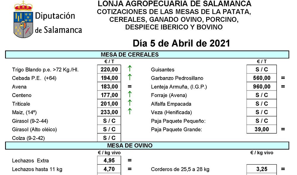 El ovino repite precios y el cereal sigue hacia arriba otra semana más en la lonja de Salamanca