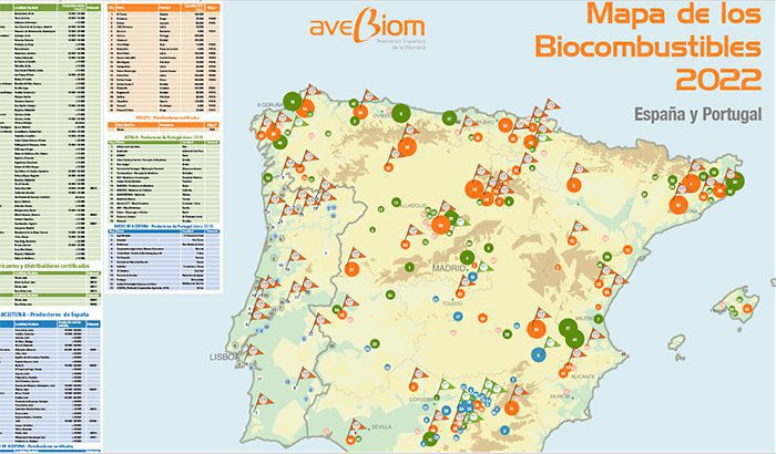 El Mapa de los Biocombustibles Sólidos 2022 elaborado por AVEBIOM, y actualizado en septiembre de 2022, muestra la ubicación y datos de 73 fábricas de pellet, 57 de astilla y 29 de hueso de aceituna inventariadas en el último año en España.