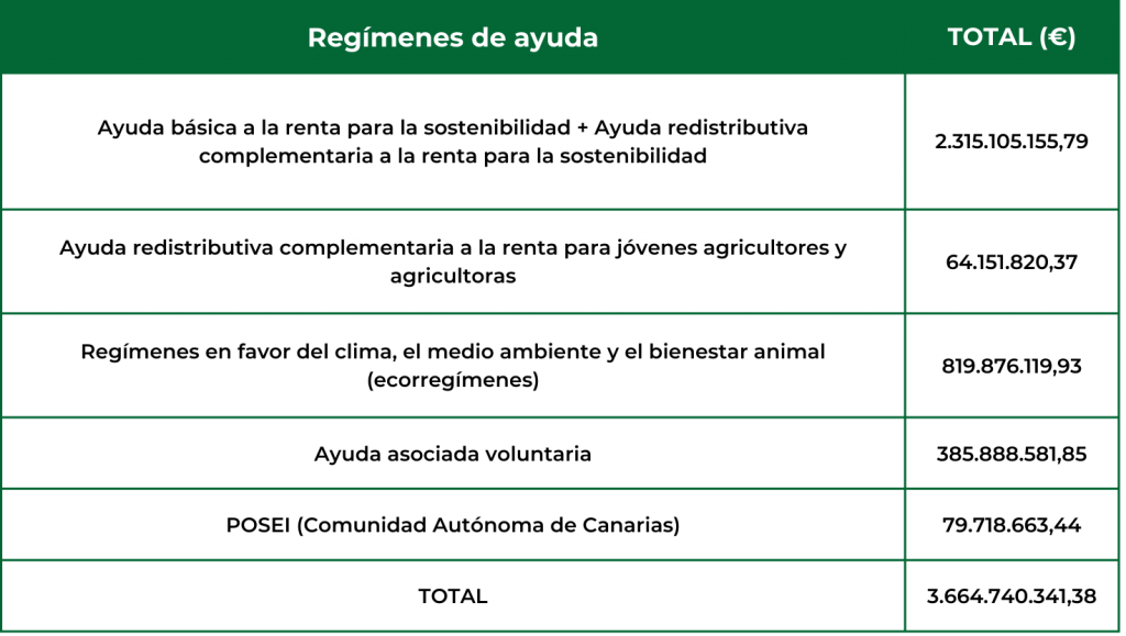 A partir del 1 de diciembre de 2024 se autorizó el abono del 90% de la ayuda básica a la renta y sus pagos complementarios. También desde el 1 de diciembre de este mismo año, se pudo transferir el 90% del pago de los ecorregímenes y los regímenes de ayudas asociadas a la agricultura, excepto el pago específico al algodón, así como de ayudas asociadas a la ganadería, excepto las ayudas al engorde de terneros.