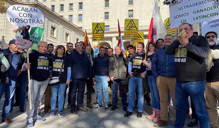 También protestaban los manifestantes por el conflicto social y económico provocado por el aumento de las manadas de lobos, situación aún más complicada desde que se aprobara la inclusión del lobo al norte del Duero en el LESPRE.