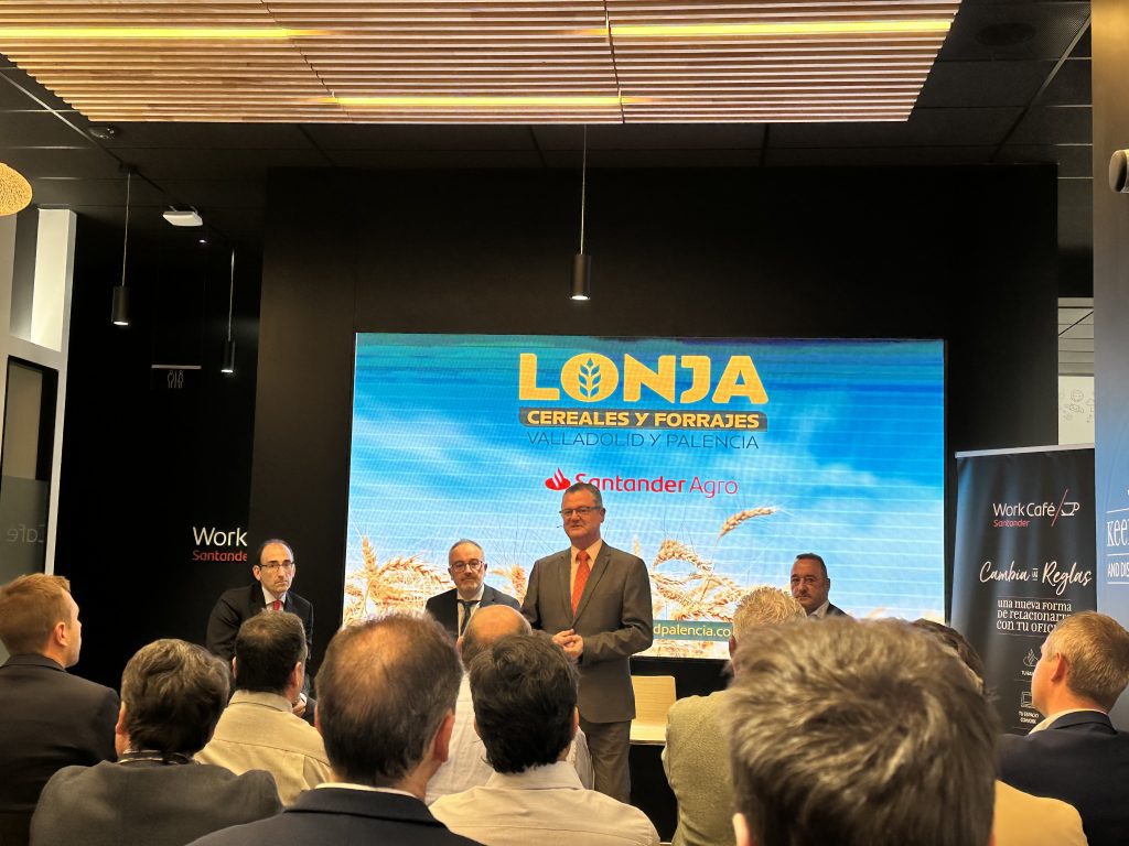 La sede del Banco Santander en la plaza Mayor de Valladolid ha acogido este viernes la constitución de la Lonja de Cereales de Valladolid y Palencia, la entidad que a partir de la próxima cosecha, que ya es inminente, ofrecerá precios de compraventa de cereal y otras materias primas a productores y comercializadores de ambos territorios.