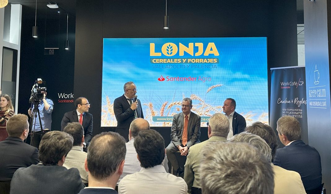 La sede del Banco Santander en la plaza Mayor de Valladolid ha acogido este viernes la constitución de la Lonja de Cereales de Valladolid y Palencia, la entidad que a partir de la próxima cosecha, que ya es inminente, ofrecerá precios de compraventa de cereal y otras materias primas a productores y comercializadores de ambos territorios.