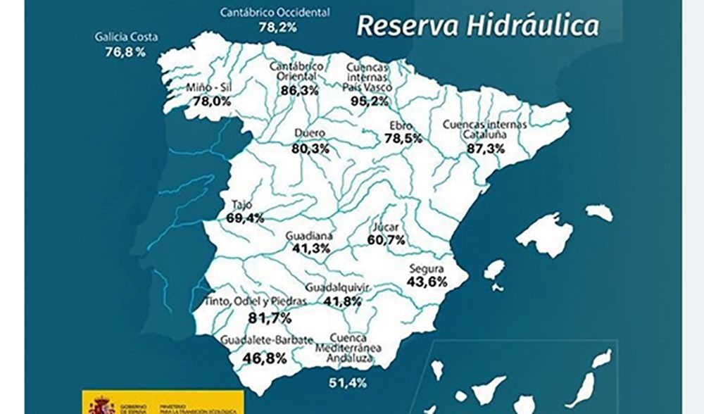 InicioAguaLa reserva hídrica española se encuentra al 62,4% de su capacidad