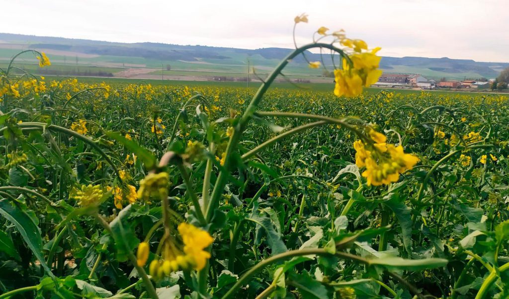 En el valle del Esgueva la colza ha acusado las bajas temperaturas. Diego Hernández, de Villarmentero de Esgueva, señala que la planta no estaba demasiado adelantada. Incluso la de regadío. “Ahí hemos tenido suerte”.