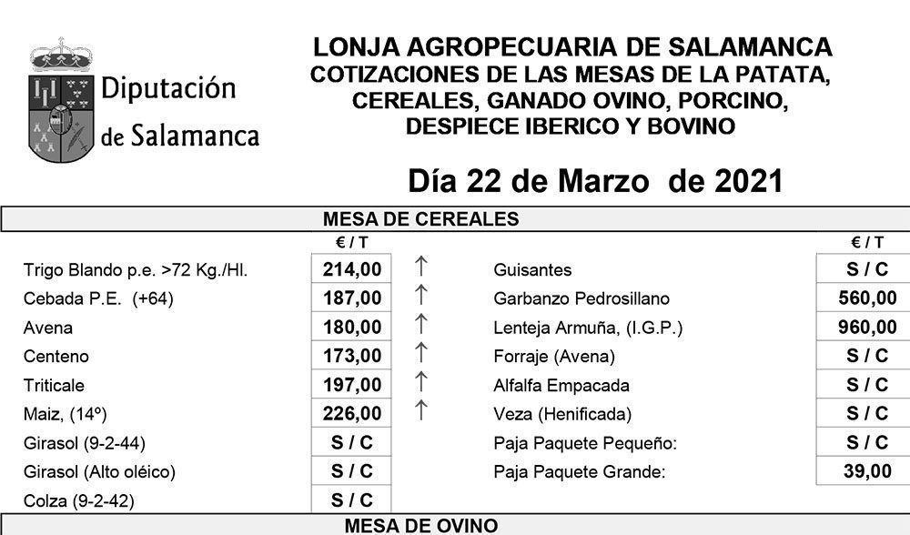 Los cereales han vuelto a subir su cotización en la sesión de hoy en la lonja de Salamanca. Así, encadenan una trayectoria de varios meses con incrementos casi continuos. Desde el 12 de octubre de 2020, el maíz ha incrementado el valor en 34 euros hasta los actuales 214 euros a los que se paga la tonelada. El trigo blando (214 euros) le sigue en el ranking, con un ascenso de 28 euros en el mismo periodo.