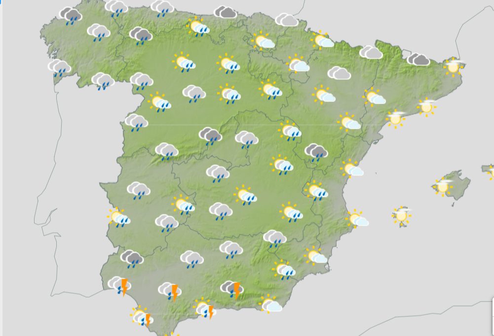 Temperaturas suaves y tiempo estable en un comienzo de semana que se prevé de tiempo intermitente en la Península y Baleares; al principio con precipitaciones afectando a buena parte del territorio, débiles en general y poco probables en el área mediterránea oriental.