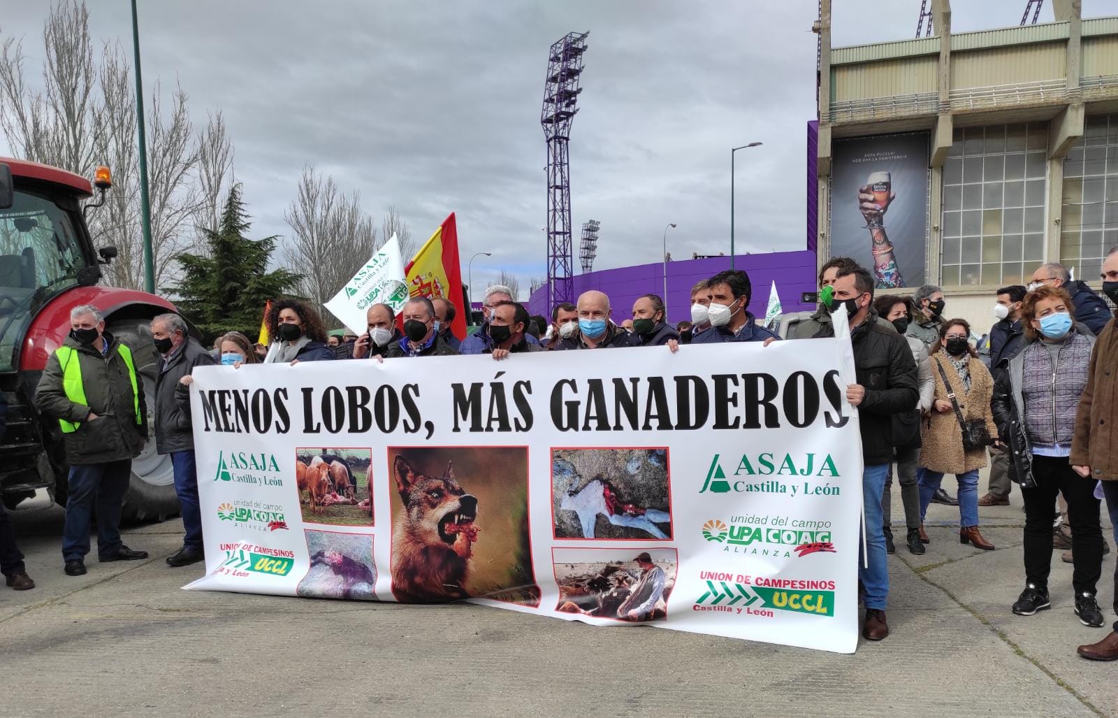 Antes de iniciar la marcha han dado una rueda de prensa en la que pedían a la ministra de Transición Ecológica y Reto Demográfico, Teresa Ribera, que echara para atrás la orden para ampliar la protección del lobo al norte del Duero. Argumentaban que el lobo ibérico no está en peligro de extinción y que los daños que provoca en la ganadería extensiva son importantes.