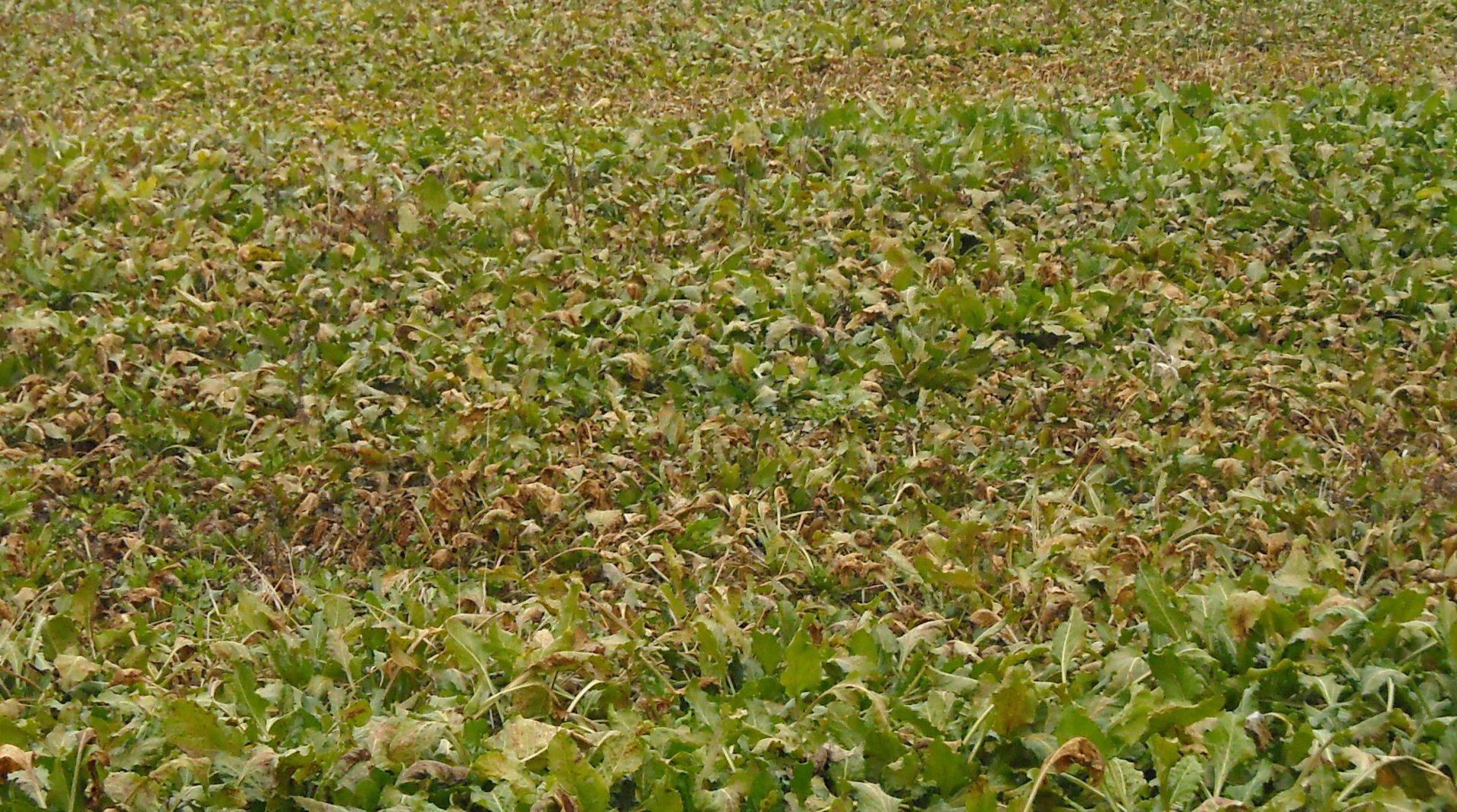 En la mayor parte de la comunidad no ha llamado mucho la atención, pues la mayor parte de los cultivadores ya han arrancado su remolacha o al menos parte de ella. En la provincia de León, sin embargo, las cosas han ido por otro camino; las lluvias fueron mucho más abundantes y por el tipo de suelo que hay en el páramo, en las tierras encharcadas no se ha podido cosechar aún y ahora las parcelas de remolacha son una postal de cercospora con toda la diferencia de tonalidad que da la severidad del ataque en las diferentes variedades sembradas.