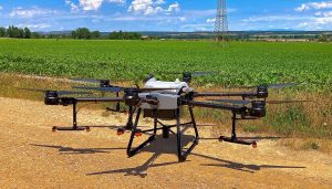 El dron para aplicación de fitos está listo para despegar