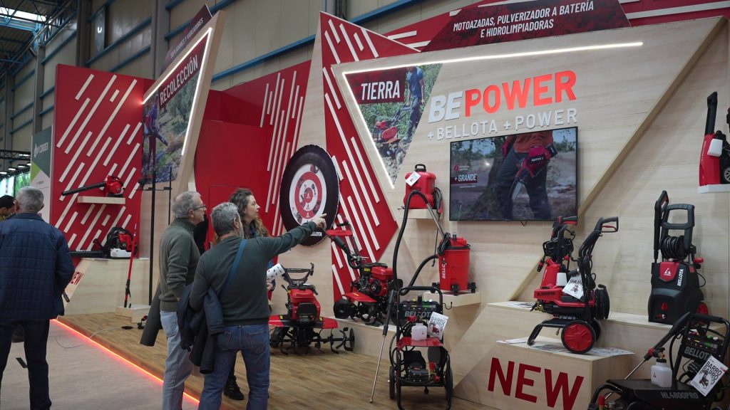 Bellota continúa ampliando su familia de maquinaria V-Power. Jaione Ortiz de Zárate recuerda que hace dos años realizaron su apuesta de largo y que en esta edición presentan nuevas motoazadas, pulverizadores eléctricos, equipos de limpieza, desbrozadoras, sopladores y motosierras.