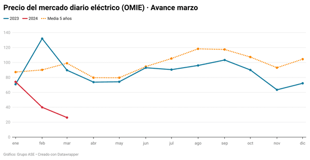 De acuerdo con los analistas de Grupo ASE, el hundimiento de los precios de las últimas semanas obedece a una situación climatológica extraordinaria, con una producción eólica e hidráulica muy por encima del promedio.