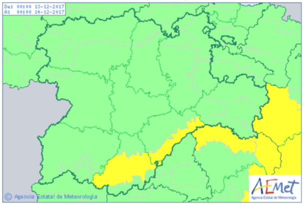 Mapa de Aemet. Aviso amarillo por temperaturas mínimas para este miércoles en Castilla y León: