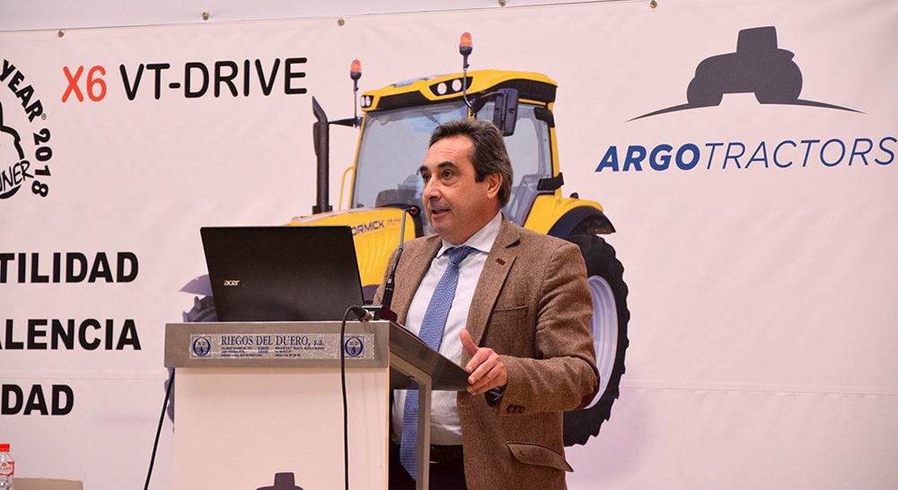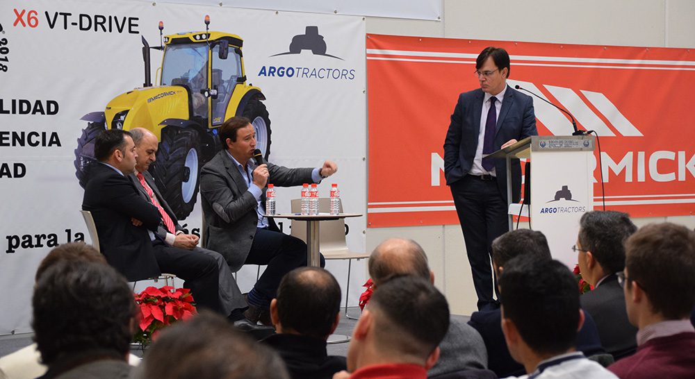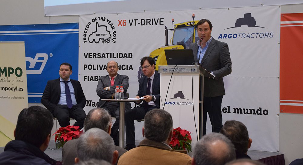 También tomó la palabra Andrés Moradas, de Argo Tractors, quien como anfitrión dio la bienvenida a los asistentes y les invitó a familiarizarse con las instalaciones de la compañía. Recordó que su compañía ha apostado por habilitar su sede en un “lugar estratégico” como Villamarciel, después de meses analizando lugares y estudiando qué estructura crear. Se decantaron por Castilla y León “por ser la número uno en tractores de alta potencia en campo abierto y la segunda en volumen de ventas”.