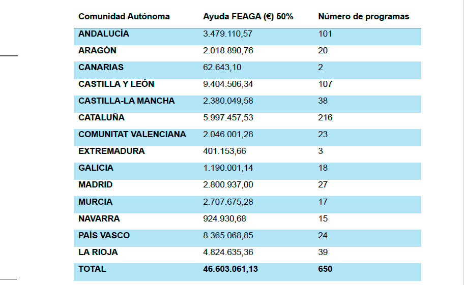 El presupuesto disponible para dicho ejercicio asciende a 55,6 millones de euros, mientras que las comunidades autónomas han solicitado ayudas por un total de 46,6 millones, es decir, por debajo del límite disponible. Actualmente, la subvención máxima que se puede conceder es del 50%.