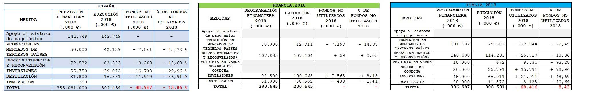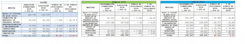 Unión de Uniones pone en evidencia que la ejecución en España no es aún peor porque una parte de los fondos que generó en nuestro país la antigua OCM vitivinícola se destinó, en la vigente PAC, al pago único, que al ser una partida de concesión directa, se ejecuta en su totalidad. De no haber sido así, es muy posible que la realización del PASVE fuera incluso menor; ya que es en medidas como la reestructuración y reconversión y la inversión en las que España se encuentra por debajo de Francia e Italia.